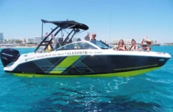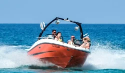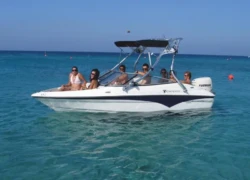 Rent the boat for as long as you like, for a minimum of 30 minutes. Bring your friends and family for a cruise along Fig Tree Bay, towards the crystal clear waters of Cape Greco, where you can stop and snorkel in the Blue Lagoon. We can provide you with snorkeling gear, a cooler box, water skis, a wakeboard, or a kneeboard. We will also give you full guidance on how to operate the boat and communicate via VHF so you can relax and safely explore the beautiful coastline of southeast Cyprus.